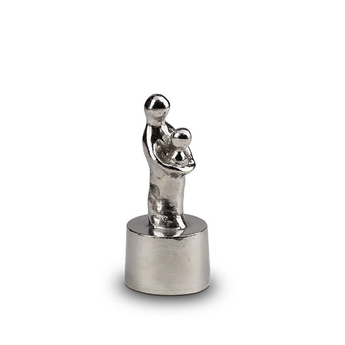 In dit licht abstracte kunstwerk ziet u een moeder die haar kind vasthoudt. Het asbeeld heeft als thema de niet te verbreken band tussen moeder en kind. Het is een prachtig kunstwerk en herinnering in één dat u overal in huis een passende plek kunt geven. In het asbeeld kunt u een klein beetje as van uw overleden dierbare bewaren.